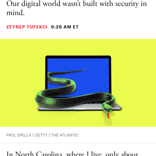 A recent article from The Atlantic highlights the fragile state of technology we are in. We should assume that our devices are not secure, and that effort is required to stay ahead of threat actors. I hate to be a fearmonger but there are people that want your money, and there are nations that want to destroy your economy. It is in your best interest to: